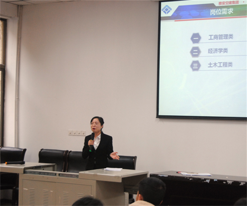 11月15日,由雅安市委、市政府主辦,雅安市委組織部、雅安市委機構編制委員會辦公室、雅安市人力資源和社會保障局承辦的2018年“雅州英才”工程赴外招才引智高校行活動走進四川大學(望江校區(qū)),交建集團招聘代表參加了現(xiàn)場宣講活動。