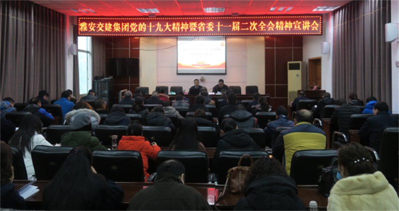 1月5日下午,市交建集團舉行專題宣講會,集中學習黨的十九大暨省委十一屆二次全會精神。會議邀請雅安市委黨校副校長楊國先同志作專題輔導,集團公司黨委書記、董事長漆家華主持輔導會并講話,交建集團全體黨員、經營班子成員、中層干部參加學習。