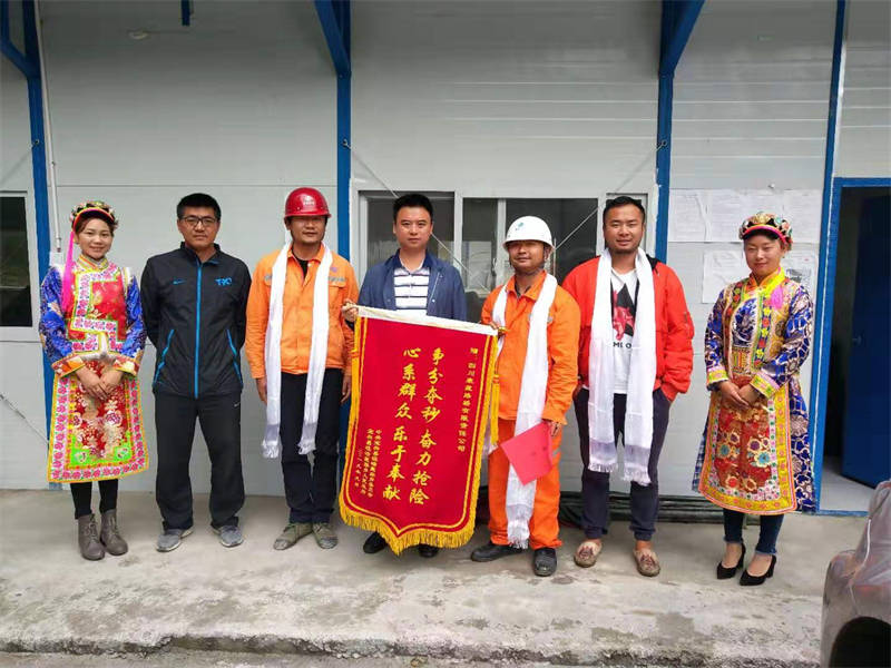 9月10日,中共寶興縣磽磧藏族鄉(xiāng)委員會、寶興縣磽磧藏族鄉(xiāng)人民政府敲鑼打鼓將一面“爭分奪秒,奮力搶險;心系群眾,樂于奉獻”的十六字錦旗和一封感謝信送到了雅安交建集團路橋公司寶興駐地。表達了寶興人民對交建集團在“8·22”特大洪災抗洪搶險中為當?shù)乩习傩兆鰧嵤隆⒔馕ky的感激之情。