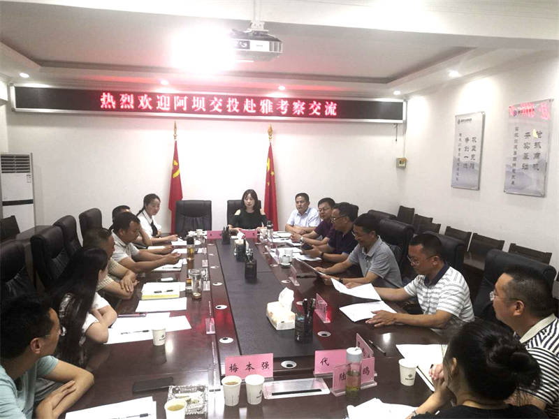 8月11日至12日,四川阿壩交通建設投資有限責任公司黨委書記、董事長李毅,黨委副書記、總經(jīng)理詹永康率隊到雅安考察交流交通建設相關(guān)事宜。雅安市交通運輸局黨組書記、局長余云峰,黨組成員、副局長趙飛勇;雅安交建集團黨委書記、董事長漆家華,黨委副書記、總經(jīng)理羅倫全等先后陪同考察、座談交流。