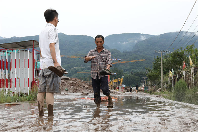 8月18日下午,在草壩青衣江大橋建設現(xiàn)場,項目部外的院壩、工地附近的道路,均覆蓋著厚厚的淤泥。“昨晚緊急撤離,我的車停在河邊,也沒來得及開走,現(xiàn)在都沒找到!币荒樒v的李勁松告訴記者,雖然洪水漲勢迅猛,但他們撤離之前,提前通知了電力部門斷電,否則若有人再次靠近洪水,將面臨觸電的風險。