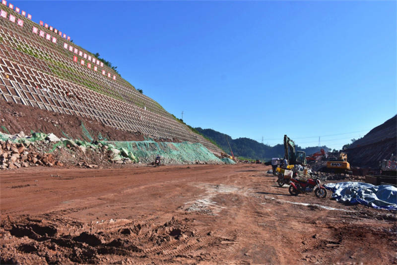 目前,金雞關隧道左側隧洞全部拆除完畢,已回填并壓實,工人們正在對開挖后的高邊坡繼續(xù)進行支護。支護完成后的高邊坡方格網內將覆蓋一層種植土,撒上草籽培育草坪,屆時將成為雨名快速通道一道亮麗景觀。