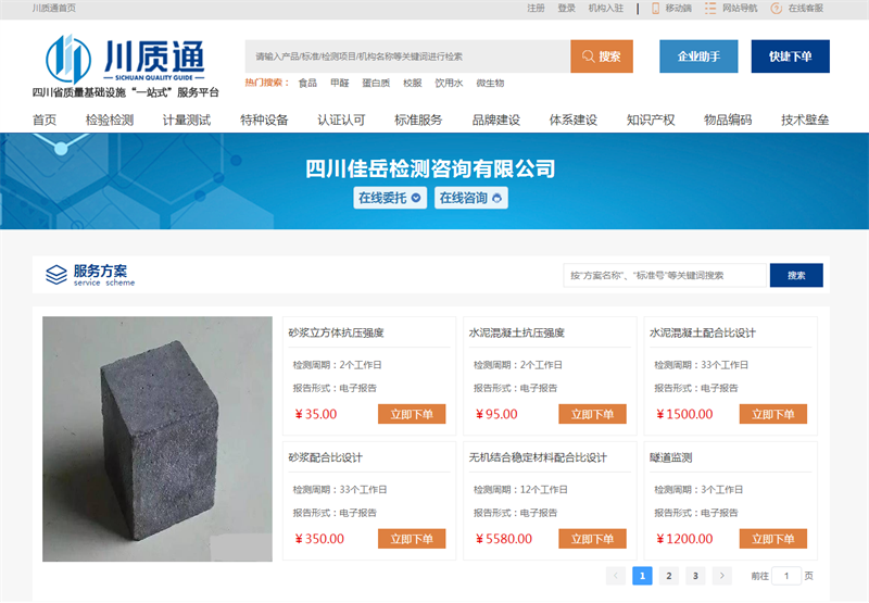 9月12日,四川佳岳檢測咨詢有限公司成功開通四川省市場監(jiān)督局一站式服務(wù)平臺“川質(zhì)通”,檢測業(yè)務(wù)實(shí)現(xiàn)向網(wǎng)上經(jīng)營拓展,為公司持續(xù)發(fā)展打開了新局面。