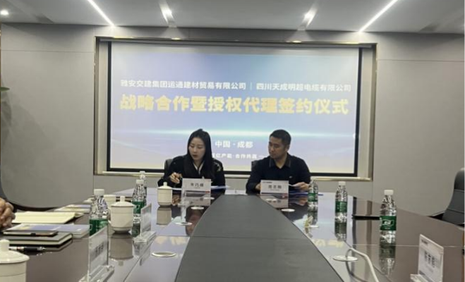 雅安交建建材公司按照集團對運輸貿(mào)易業(yè)務(wù)高質(zhì)量發(fā)展要求,積極開展建材市場新興產(chǎn)業(yè)調(diào)研和開拓。經(jīng)不懈努力,近日,與四川天成明超電纜有限公司(以下簡稱:天成公司)成功完成戰(zhàn)略合作暨授權(quán)代理簽約。
