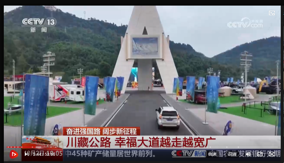 為慶祝新中國成立75周年,展現(xiàn)中國式現(xiàn)代化進程中的發(fā)展成就。10月2日,中央廣播電視總臺推出《[奮進強國路 闊步新征程]川藏公路 幸福大道越走越寬廣》特別節(jié)目,對大本營基本情況及正在開展的全國裝備展銷會進行了報道。