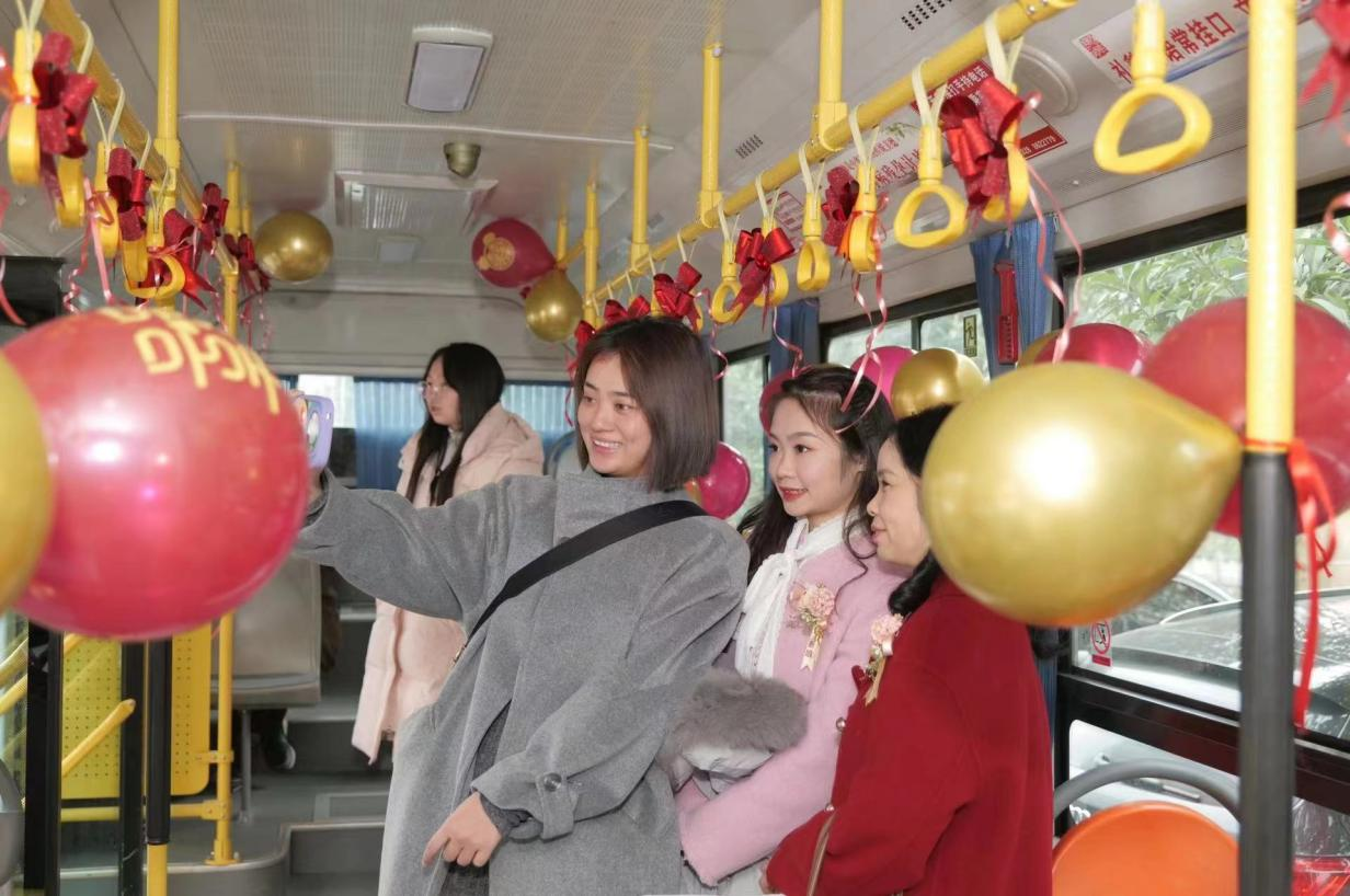 使用這輛“公交婚車”的新人表示:“與傳統(tǒng)迎親的車隊(duì)相比,公交婚車不僅低碳環(huán)保,好看熱鬧,而且租金也相對(duì)較低,性價(jià)比直接拉滿,親朋好友都聚集在寬敞的公交車?yán),一路拍照、唱歌,特別有儀式感”。