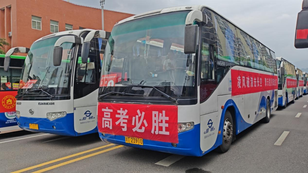 伴隨一年一度高考季的來臨,蜀通公司始終秉持“安全、優(yōu)質(zhì)、及時、有序、便捷”這一服務(wù)宗旨,竭盡全力為考生們打造一流的乘車體驗。公司高度重視高考期間的運輸服務(wù),經(jīng)過精心策劃和周密部署,確保了車輛落實到位、駕乘人員配備到位、安全責(zé)任落實到位、安全措施落實到位、應(yīng)急預(yù)案落實到位、考生運輸安全教育落實到位“六個到位”。在 6 月 6 日至 9 日的高考準(zhǔn)備與高考期間,蜀通公司調(diào)度客運車輛、公交車以及出租車總計 57 輛,為我市各區(qū)縣一千余名師生給予安全接送服務(wù)。