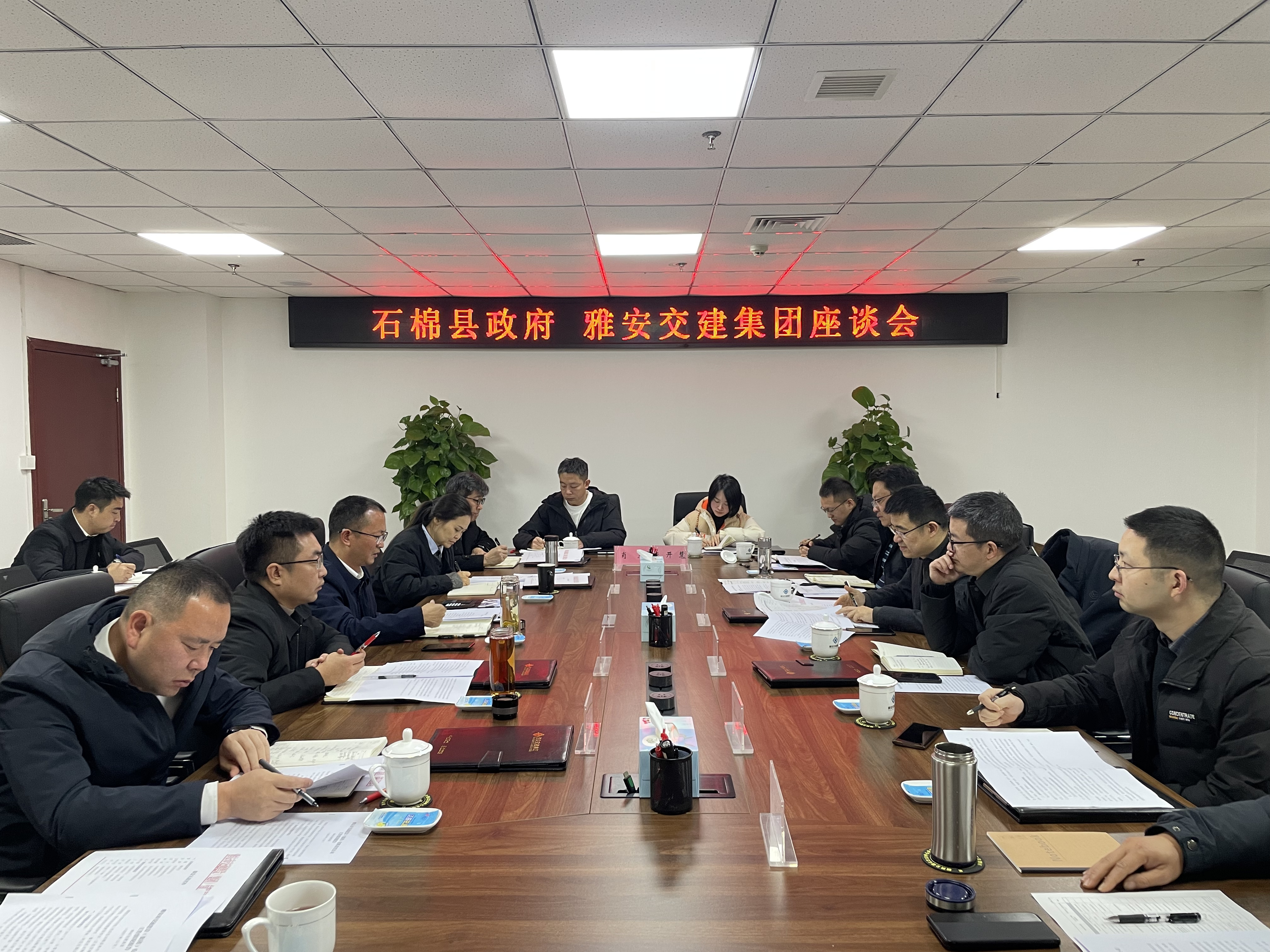 12月24日,石棉縣人民政府副縣長曹冀帶隊赴雅安交建集團(tuán)開展工作座談?h發(fā)改、交通、住建、財政等部門負(fù)責(zé)人;交建集團(tuán)黨委副書記、總經(jīng)理趙飛勇,黨委委員、副總經(jīng)理丁春、鐘焱宇,路橋公司、項管(川康)公司、建管部、投發(fā)部負(fù)責(zé)人參與座談。