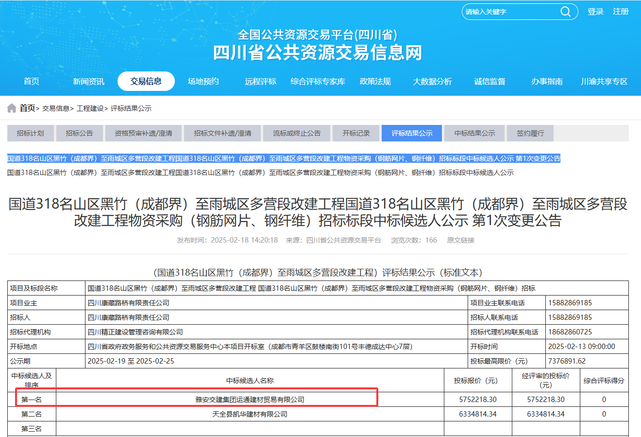 新年伊始,雅安交建集團建材公司憑借過硬實力和平臺企業(yè)優(yōu)勢,在重點基建項目招標(biāo)中連獲突破,成功中標(biāo)國道318名山區(qū)黑竹(成都界)至雨城區(qū)多營段改建工程兩大核心物資供應(yīng),合同總額突破2100萬元,為2025年度經(jīng)營目標(biāo)達成奠定堅實基礎(chǔ)。