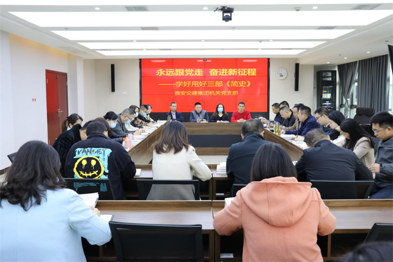 2021年11月4日,為進(jìn)一步引導(dǎo)黨員學(xué)史明理、學(xué)史增信、學(xué)史崇德、學(xué)史力行,雅安交建集團(tuán)機(jī)關(guān)黨支部開展“永遠(yuǎn)跟黨走·奮進(jìn)新征程”學(xué)“三史”活動(dòng),深入學(xué)習(xí)了《中國(guó)人民共和國(guó)簡(jiǎn)史》《改革開放簡(jiǎn)史》《社會(huì)主義發(fā)展簡(jiǎn)史》,著力號(hào)召全體黨員了解昨天、把握今天、開創(chuàng)明天,營(yíng)造出學(xué)史知史的濃厚氛圍。會(huì)議由機(jī)關(guān)黨支部書記宋長(zhǎng)江主持,集團(tuán)領(lǐng)導(dǎo)班子成員以普通黨員身份參加學(xué)習(xí)。