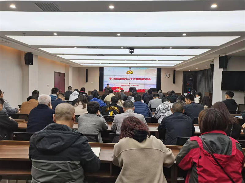 為深入學(xué)習(xí)宣傳貫徹黨的二十大精神,11月21日晚,開(kāi)發(fā)公司黨支部、無(wú)水港公司黨支部邀請(qǐng)雅安市委黨校楊滿(mǎn)康教授深入企業(yè),對(duì)黨的二十大精神進(jìn)行宣講、解讀。兩家公司全體黨員干部職工共計(jì)50余人參加。