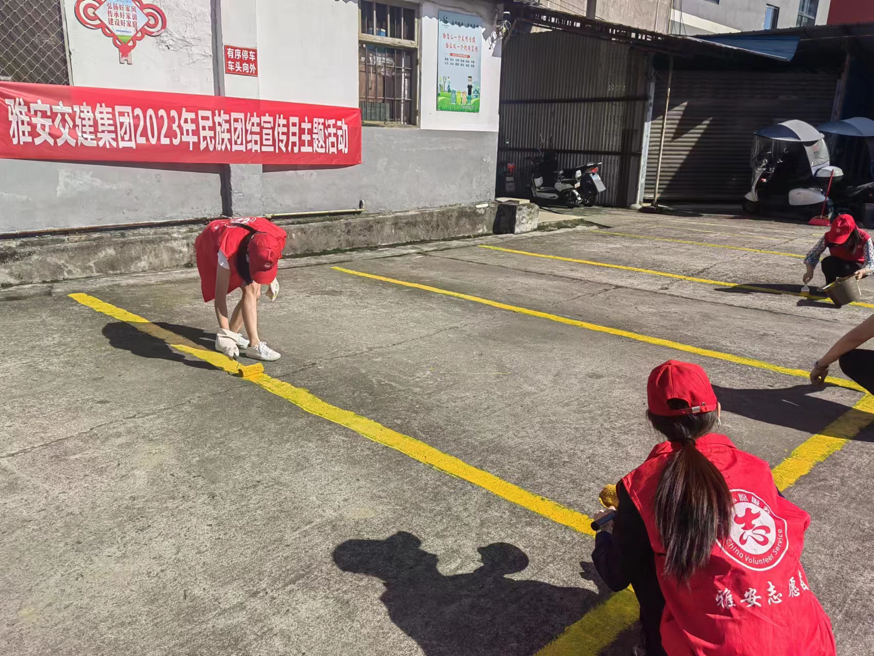 活動(dòng)現(xiàn)場(chǎng)分宣傳講解、上門(mén)服務(wù)、衛(wèi)生清潔、停車場(chǎng)油漆添補(bǔ)4個(gè)小組。通過(guò)發(fā)放宣傳資料、現(xiàn)場(chǎng)答疑解惑、衛(wèi)生死角清掃、停車線添補(bǔ)等活動(dòng),向小區(qū)住戶、街道過(guò)往市民、車站乘客等群眾宣傳民族團(tuán)結(jié)示范市創(chuàng)建工作相關(guān)問(wèn)題和民族團(tuán)結(jié)相關(guān)知識(shí),進(jìn)一步提升群眾對(duì)民族團(tuán)結(jié)進(jìn)步的認(rèn)識(shí),激發(fā)居民促進(jìn)共同繁榮發(fā)展的主動(dòng)意識(shí),攜手推進(jìn)民族團(tuán)結(jié)進(jìn)步創(chuàng)建,助力雅安市創(chuàng)建民族團(tuán)結(jié)進(jìn)步示范市工作。