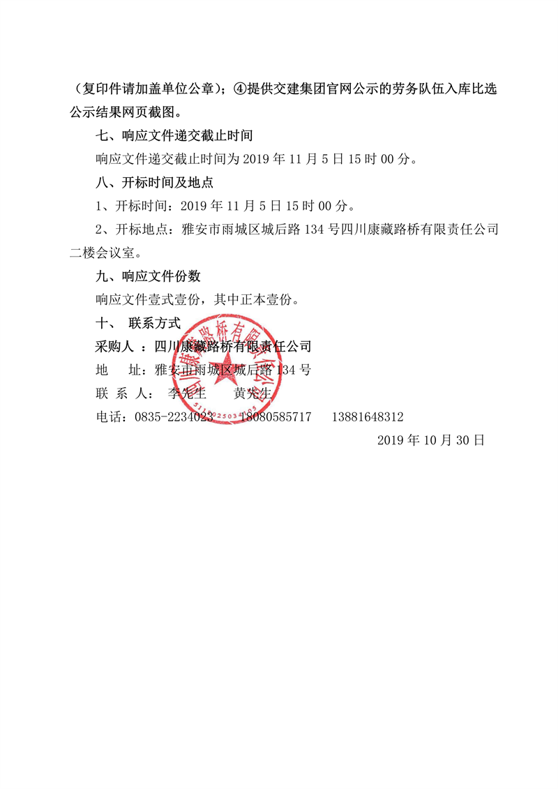四川康藏路橋有限責(zé)任公司省道104線草壩至姚橋段改建工程項(xiàng)目擋墻(第一階段)施工勞務(wù)競價(jià)公告