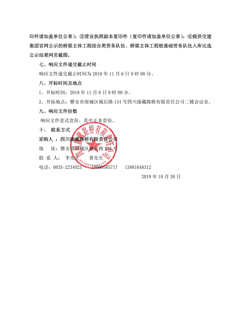 四川康藏路橋有限責(zé)任公司省道104線草壩至姚橋段改建工程項(xiàng)目橋梁樁基礎(chǔ)施工勞務(wù)競(jìng)價(jià)公告