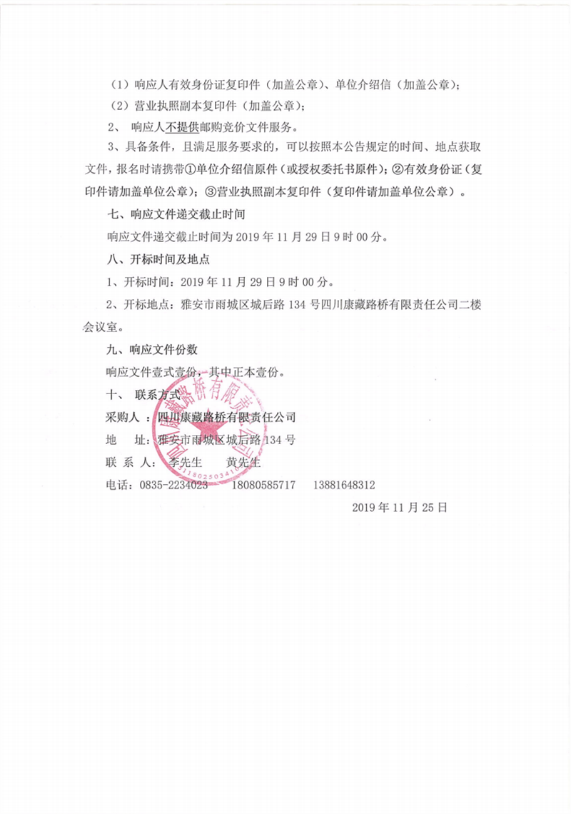 四川康藏路橋有限責(zé)任公司蘆山縣龍門(mén)、大川等8個(gè)鄉(xiāng)鎮(zhèn)基礎(chǔ)設(shè)施恢復(fù)提升工程項(xiàng)目施工勞務(wù)競(jìng)價(jià)公告
