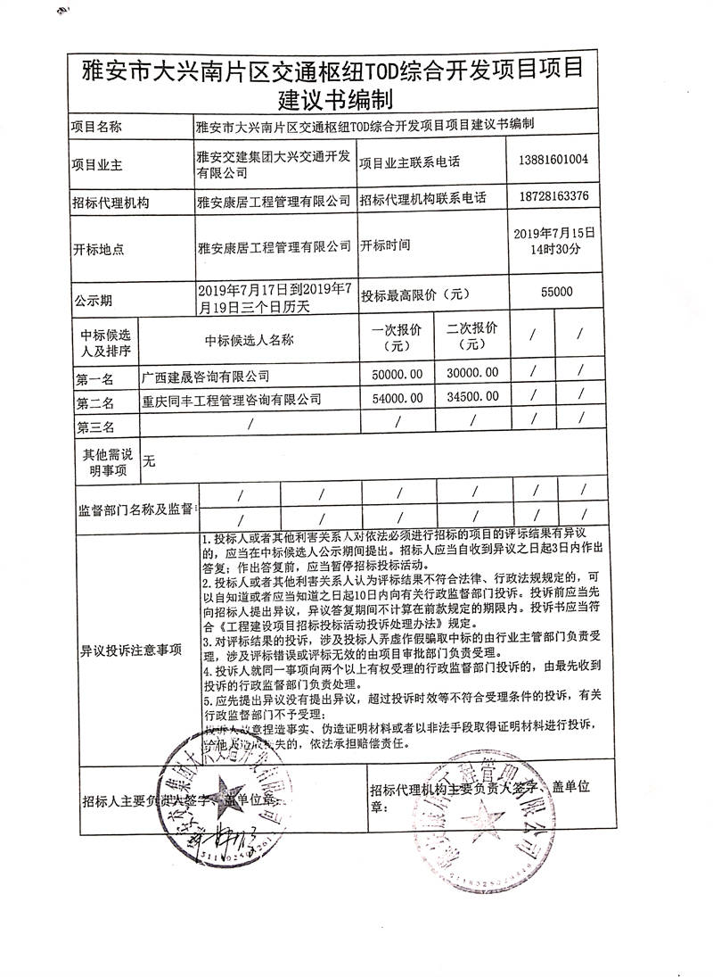 雅安交建集團(tuán)大興交通開發(fā)有限公司雅安市大興南片區(qū)交通樞紐TOD綜合開發(fā)項(xiàng)目項(xiàng)目建議書編制競(jìng)爭(zhēng)性談判結(jié)果公示