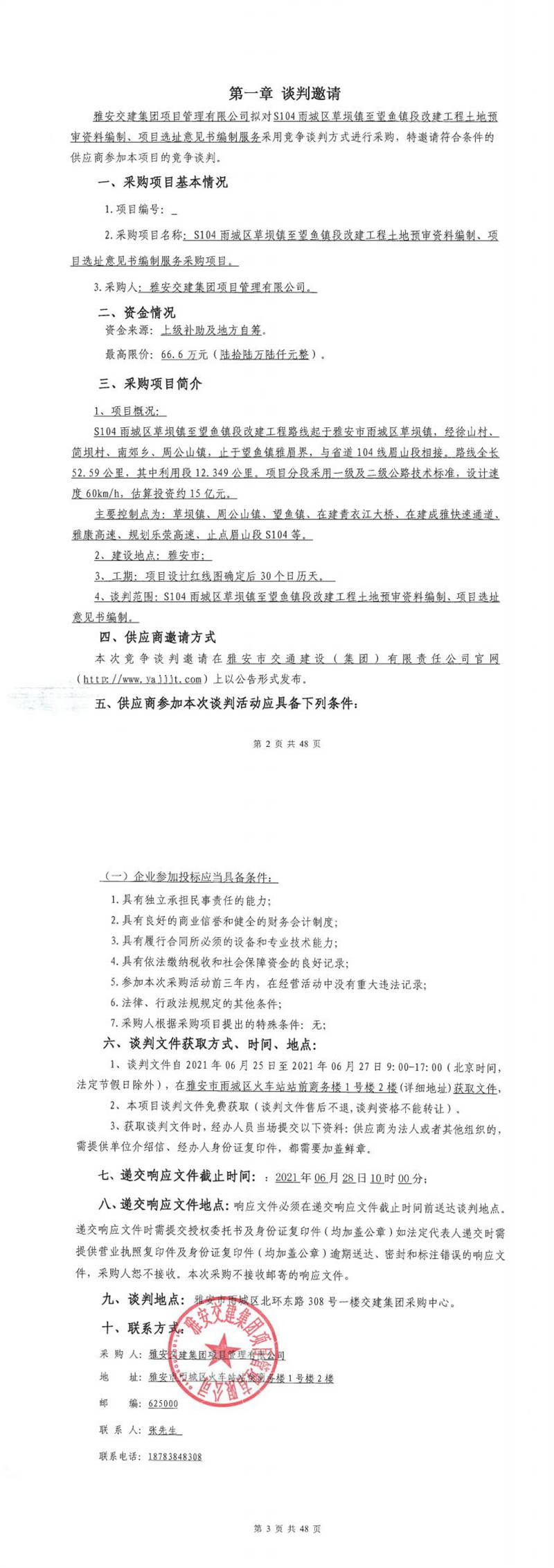 雅安交建集團(tuán)項(xiàng)目管理有限公司S104雨城區(qū)草壩鎮(zhèn)至望魚鎮(zhèn)段改建工程土地預(yù)審資料編制、項(xiàng)目選址意見書編制服務(wù)采購(gòu)項(xiàng)目