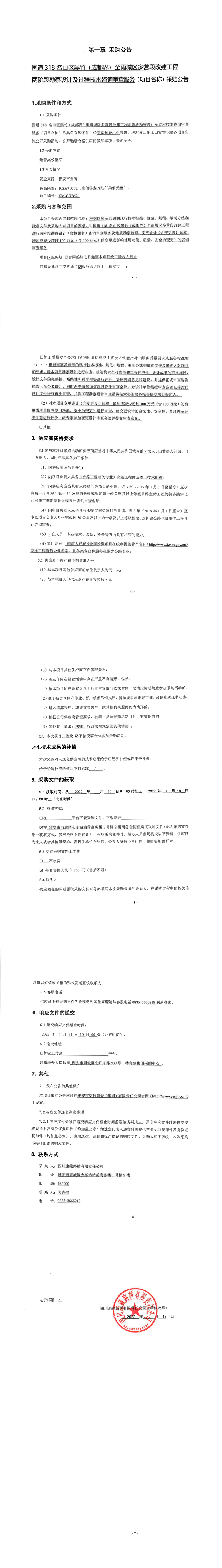四川康藏路橋有限責任公司國道318名山區(qū)黑竹(成都界)至雨城區(qū)多營段改建工程兩階段勘察設計及過程技術咨詢審查服務采購公告
