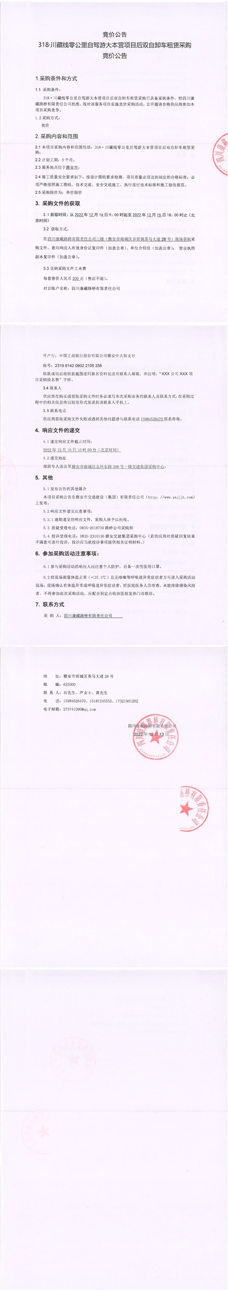 四川康藏路橋有限責任公司318.川藏線零公里自駕游大本營項目后雙自卸車租賃采購競價公告