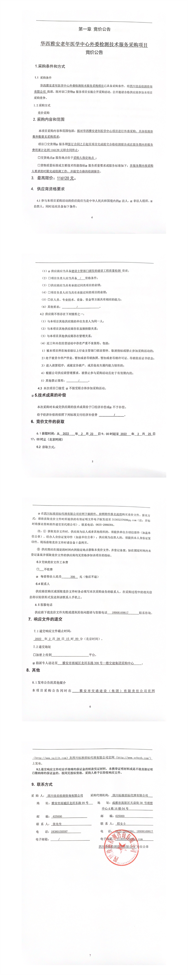 四川佳岳檢測(cè)咨詢有限公司華西雅安老年醫(yī)學(xué)中心外委檢測(cè)技術(shù)服務(wù)采購項(xiàng)目競(jìng)價(jià)公告