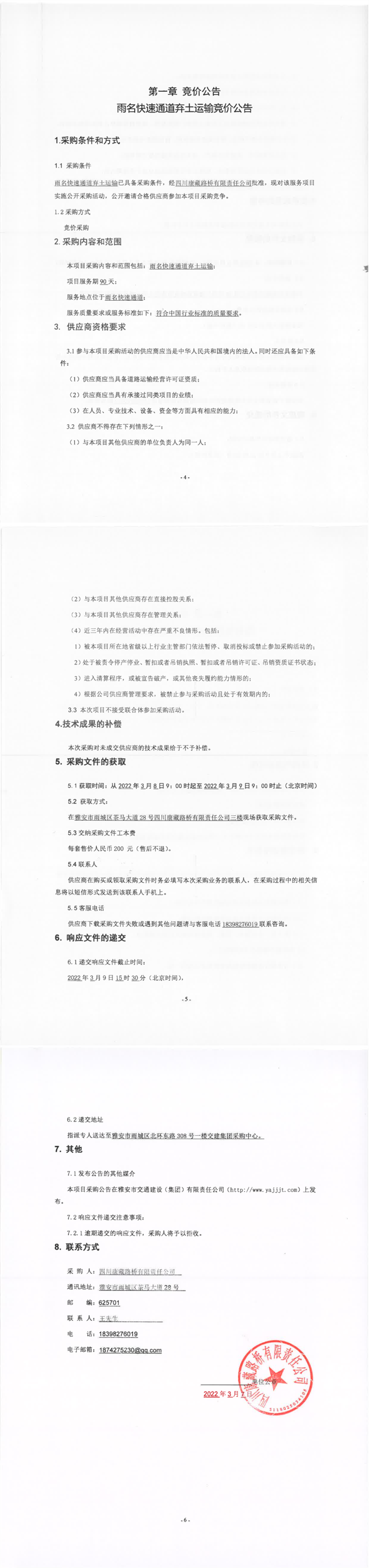 四川康藏路橋有限責(zé)任公司雨名快速通道棄土運輸競價公告
