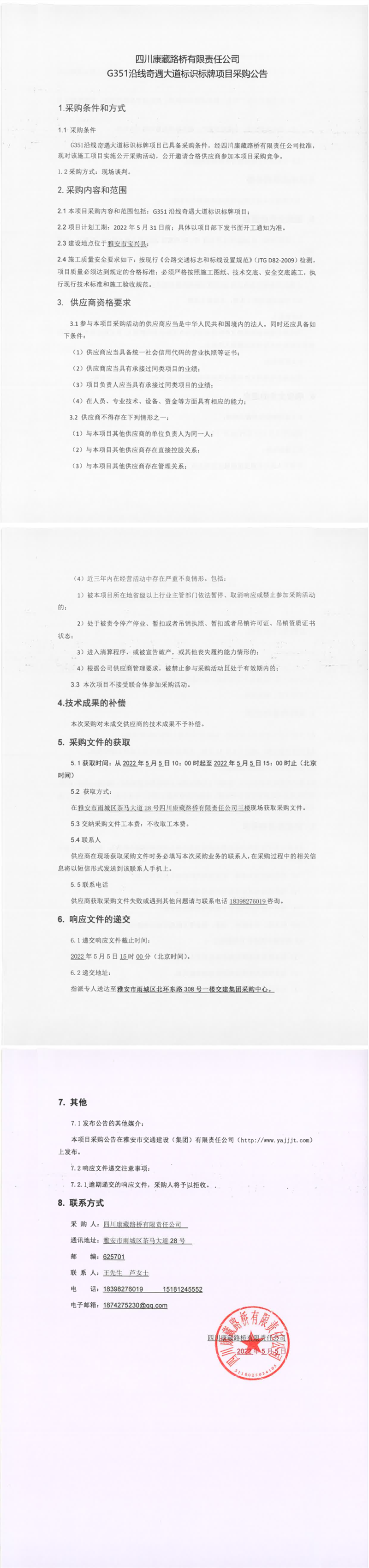四川康藏路橋有限責(zé)任公司G351沿線奇遇大道標(biāo)識(shí)標(biāo)牌項(xiàng)目采購公告