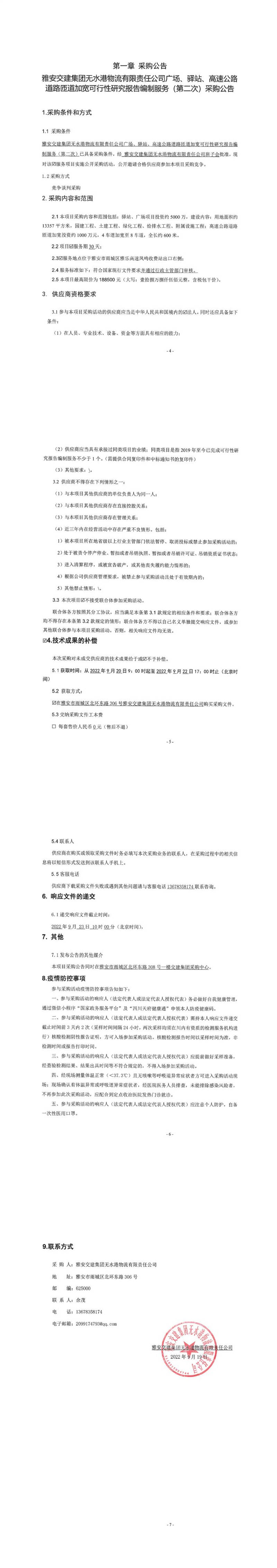 雅安交建集團無水港物流有限責任公司廣場、驛站、高速公路道路匝道加寬安全預評價、安全設施設計、環(huán)境影響評價、水土保持方案編制服務(第二次)競爭談判結(jié)果公示