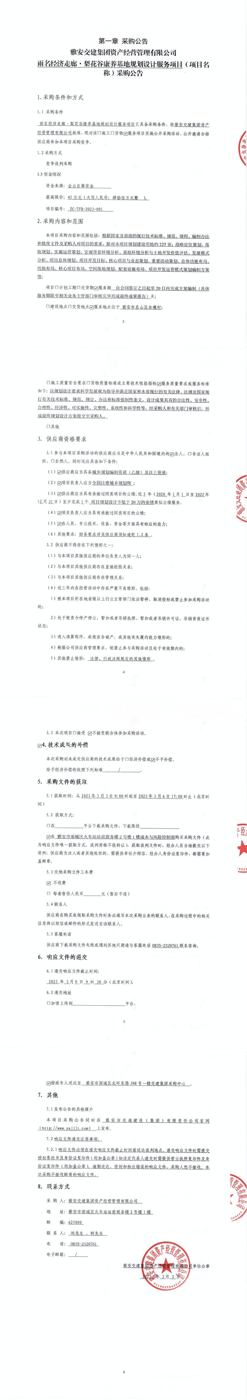 雅安交建集團(tuán)資產(chǎn)經(jīng)營管理有限公司雨名經(jīng)濟(jì)走廊·梨花谷康養(yǎng)基地規(guī)劃設(shè)計服務(wù)項目(項目名稱)采購公告