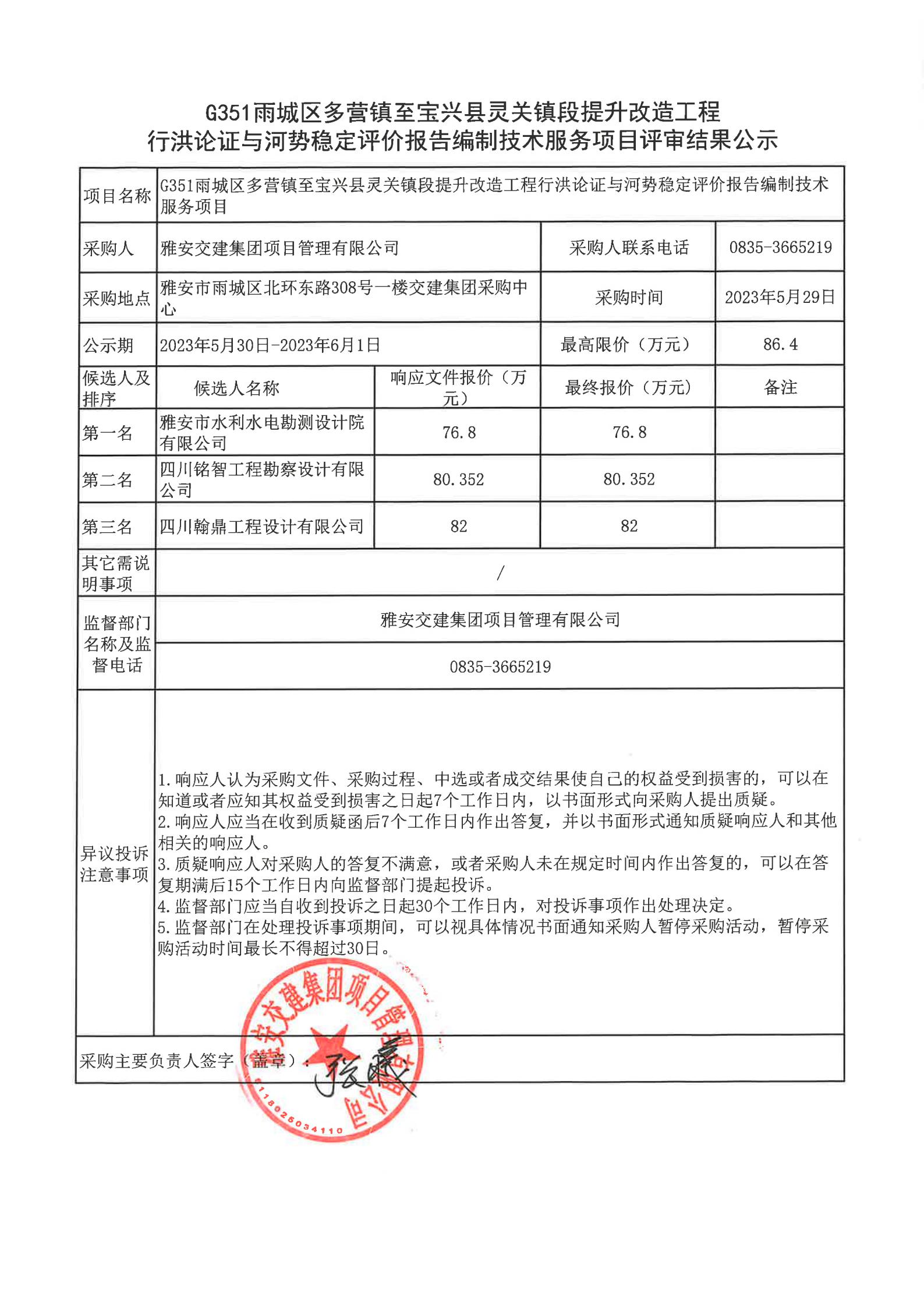 雅安交建集團(tuán)項(xiàng)目管理有限公司G351雨城區(qū)多營鎮(zhèn)至寶興縣靈關(guān)鎮(zhèn)段提升改造工程行洪論證與河勢穩(wěn)定評(píng)價(jià)報(bào)告編制技術(shù)服務(wù)項(xiàng)目評(píng)審結(jié)果公示