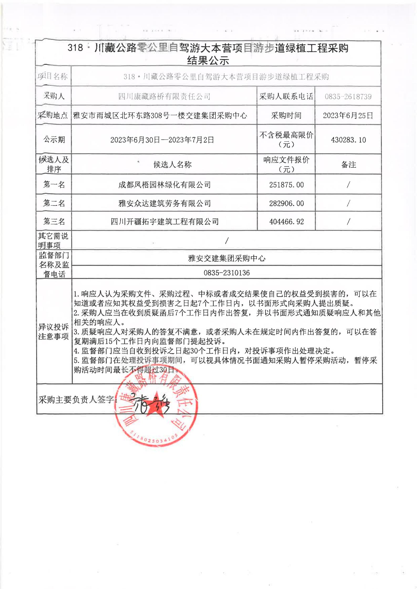 四川康藏路橋有限責(zé)任公司318·川藏公路零公里自駕游大本營項目游步道綠植工程采購結(jié)果公示