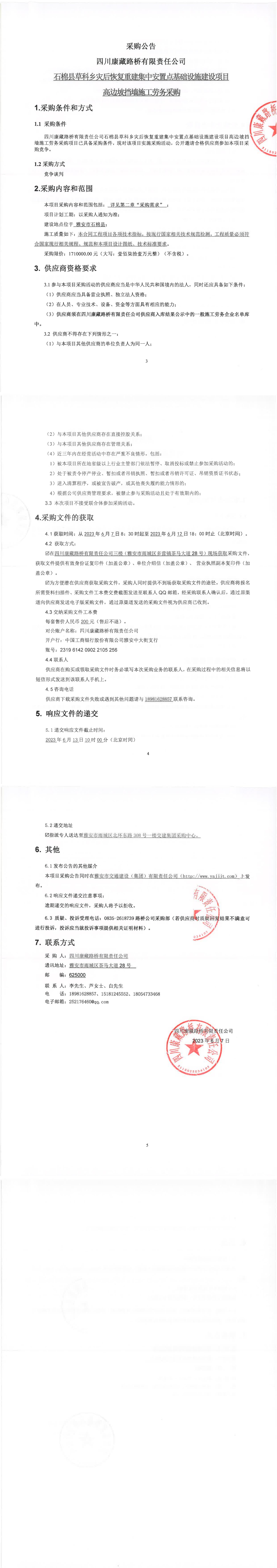 四川康藏路橋有限責(zé)任公司石棉縣草科鄉(xiāng)災(zāi)后恢復(fù)重建集中安置點(diǎn)基礎(chǔ)設(shè)施建設(shè)項(xiàng)目高邊坡?lián)鯄κ┕趧?wù)采購(gòu)