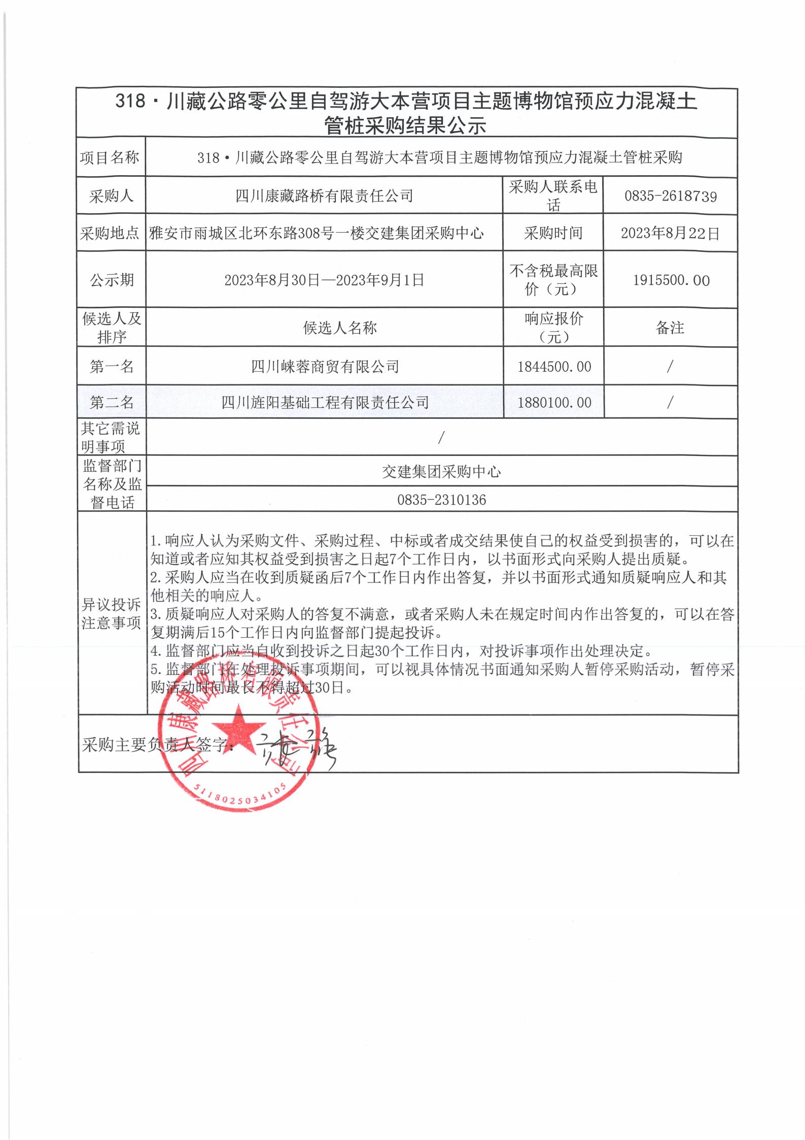 四川康藏路橋有限責(zé)任公司318·川藏公路零公里自駕游大本營項目主題博物館預(yù)應(yīng)力混凝土管樁采購結(jié)果公示