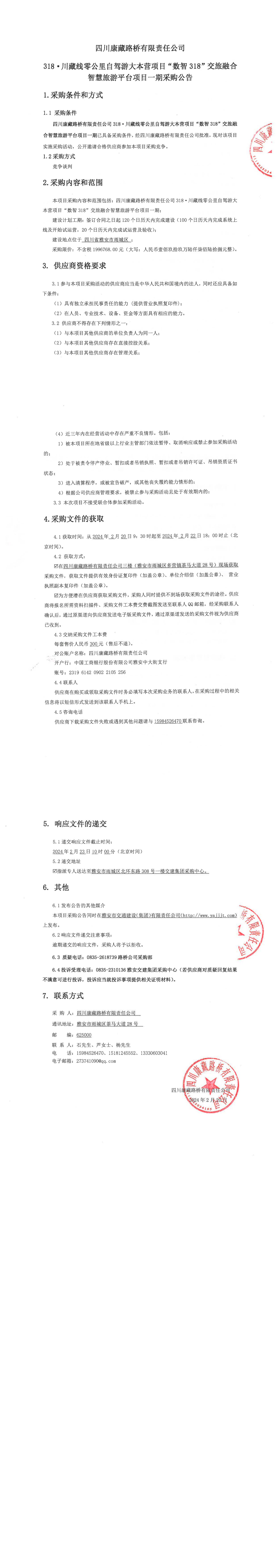 四川康藏路橋有限責任公司318·川藏線零公里自駕游大本營項目“數智318”交旅融合智慧旅游平臺項目一期采購公告