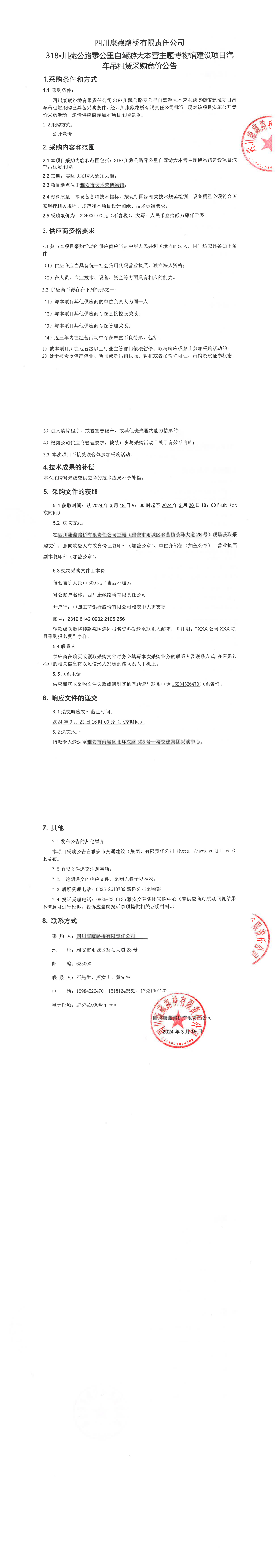 四川康藏路橋有限責(zé)任公司318·川藏公路零公里自駕游大本營(yíng)文化旅游基礎(chǔ)設(shè)施建設(shè)項(xiàng)目文明環(huán)保設(shè)施、設(shè)備采購(gòu)及安裝競(jìng)價(jià)公告