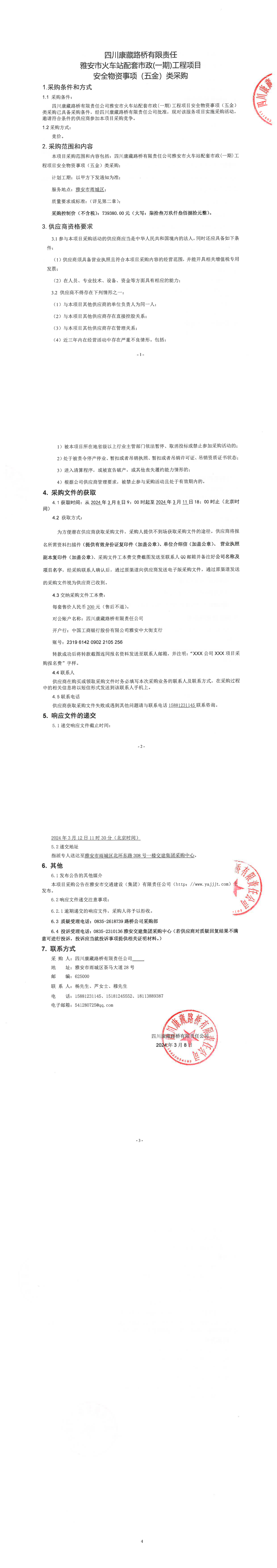 四川康藏路橋有限責(zé)任公司雅安市火車(chē)站配套市政(一期)工程項(xiàng)目安全物資事項(xiàng)(五金)類采購(gòu)公告