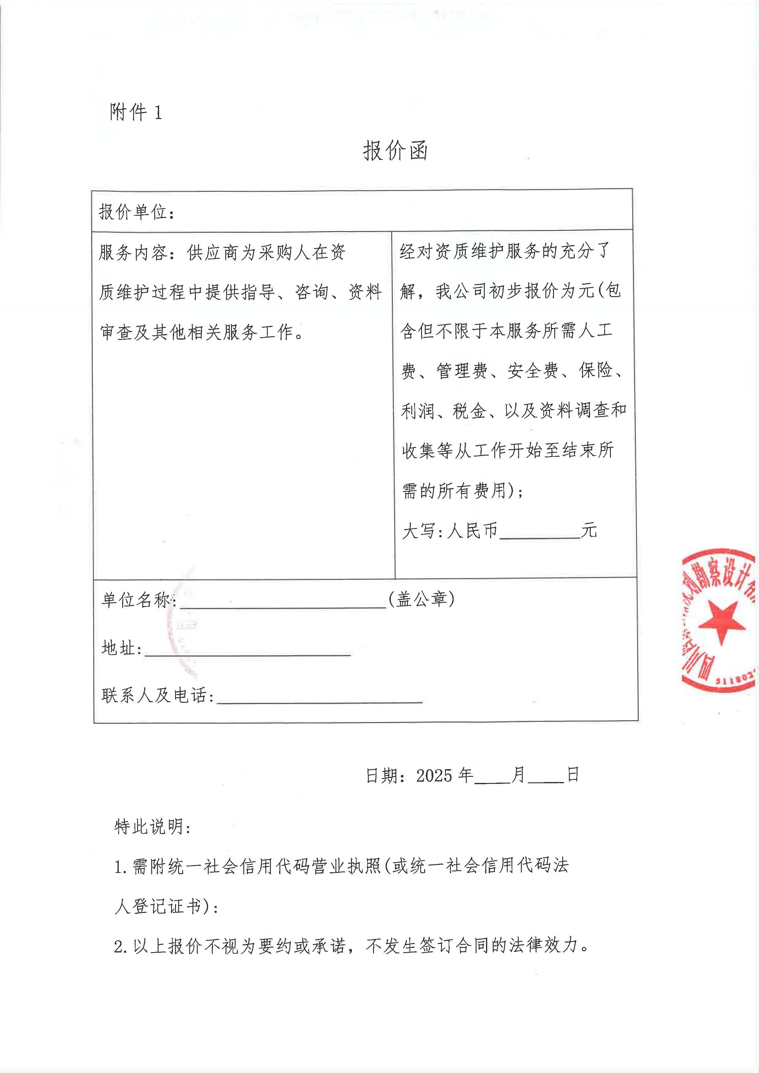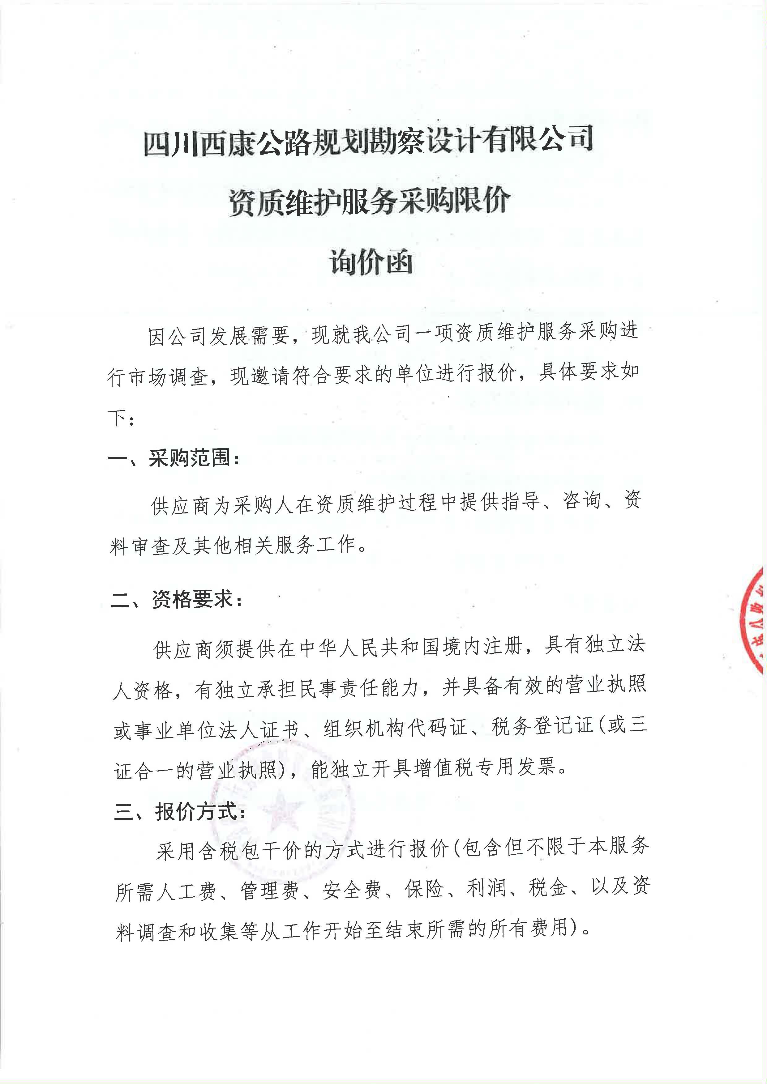 四川西康公路規(guī)劃勘察設計有限公司資質維護服務采購限價詢價函