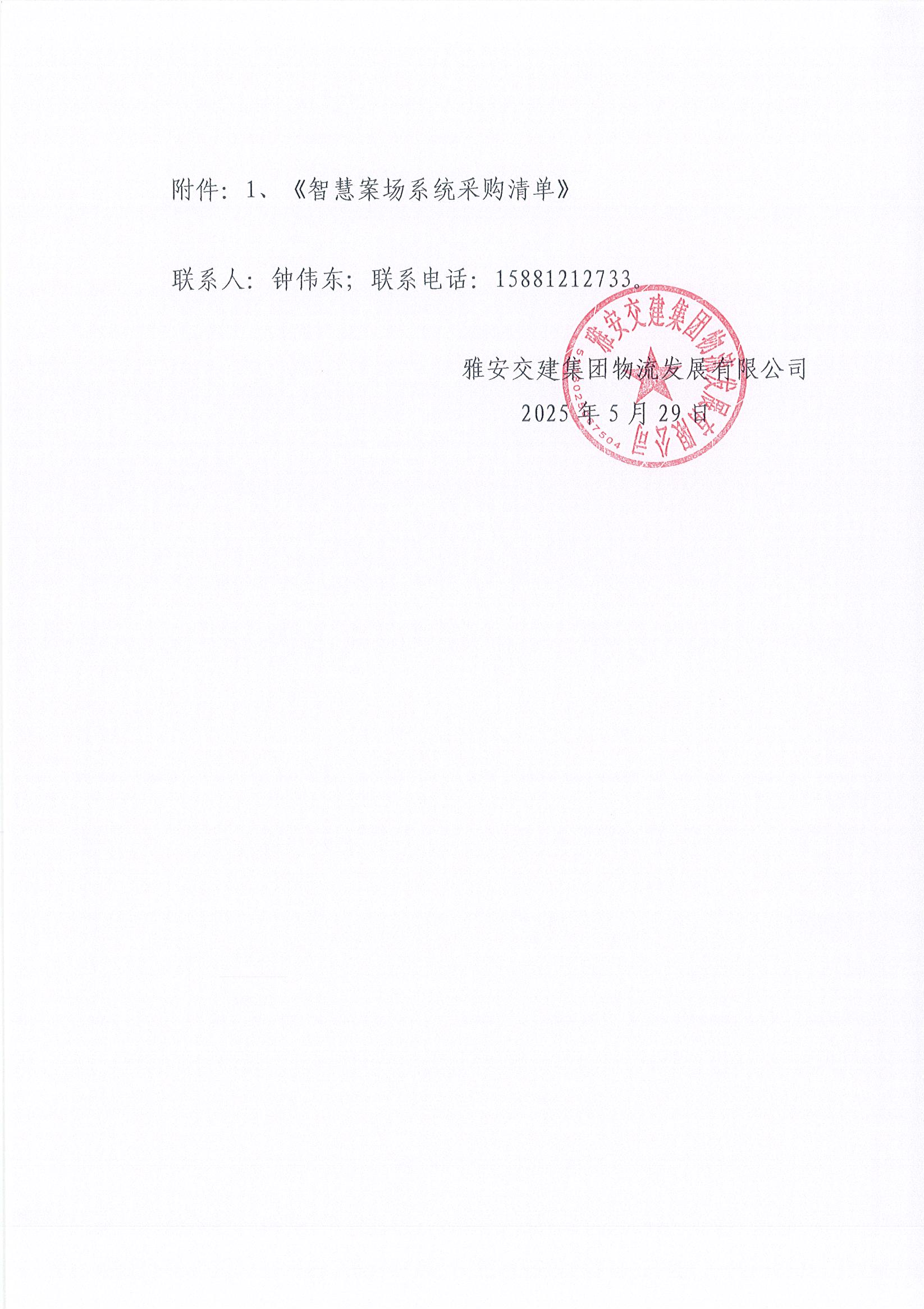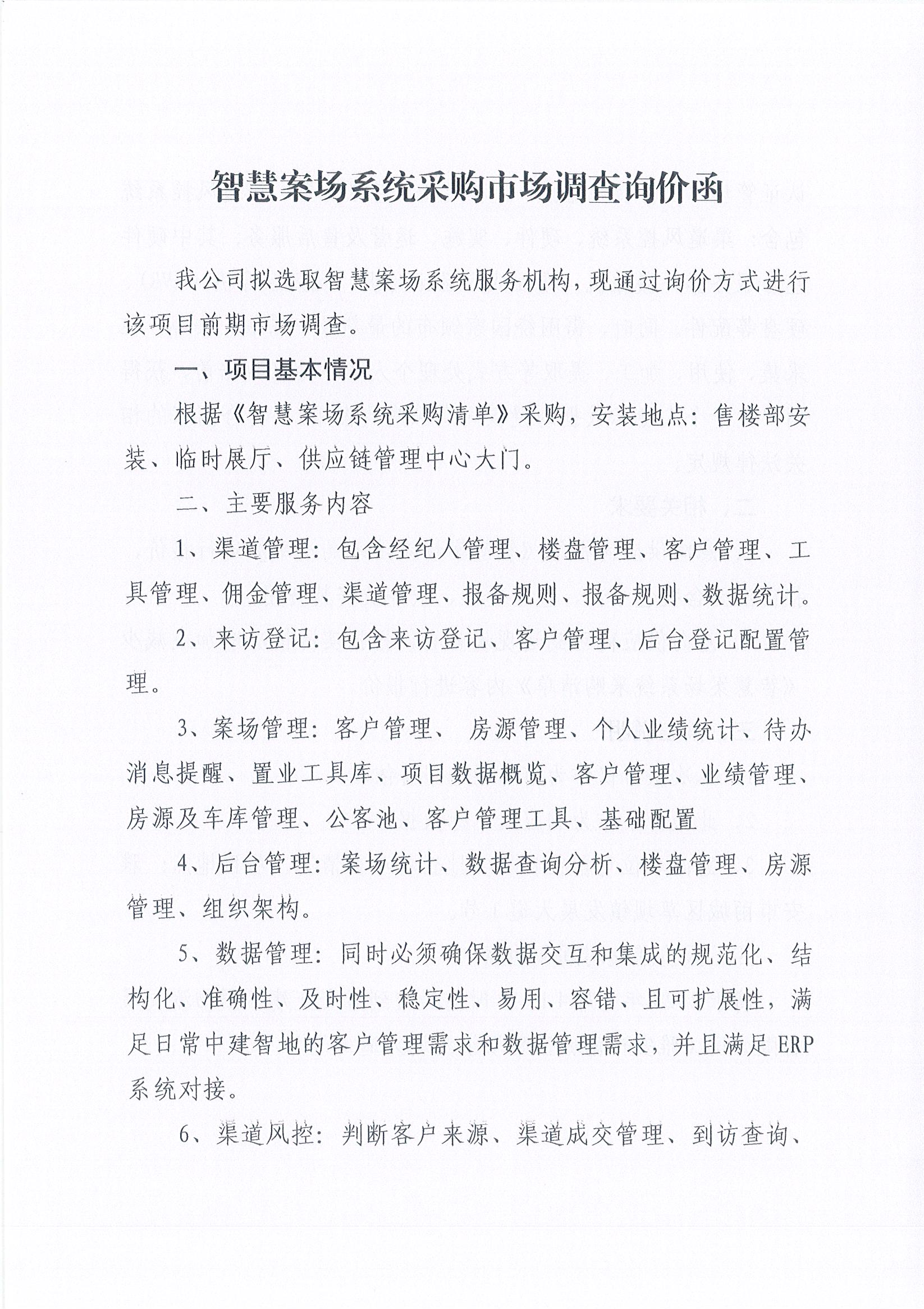 雅安交建集團(tuán)物流發(fā)展有限公司智慧案場(chǎng)系統(tǒng)采購(gòu)市場(chǎng)調(diào)查詢(xún)價(jià)函
