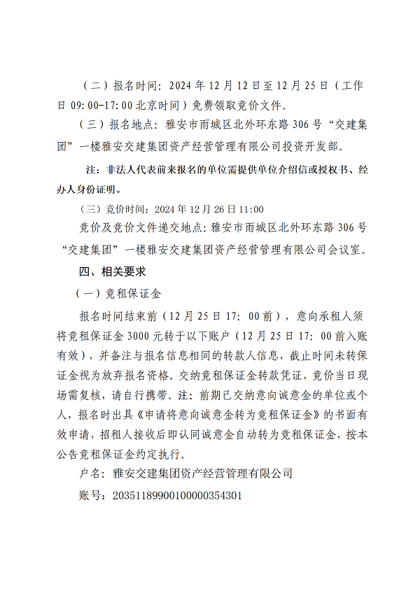 雅安交建集團資產(chǎn)經(jīng)營管理有限公司2024年雨名快速通道名山黑碾子大橋下場地招租公告