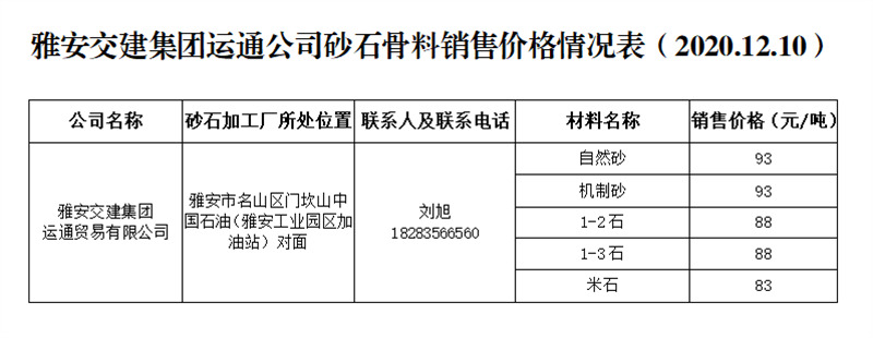 ÑŰ²½»½¨¼¯ˆF(tu¨¢n)ß\(y¨´n)ͨ¹«Ë¾É°Ê¯¹ÇÁÏäN(xi¨¡o)ÊÛƒr(ji¨¤)¸ñÇé›r±í£¨2020.12.10£©