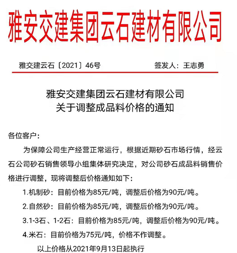 ÑŰ²½»½¨¼¯ˆF(tu¨¢n)ÔÆÊ¯¹«Ë¾êP(gu¨¡n)ÓÚÕ{(di¨¤o)Õû³ÉÆ·ÁÏäNÊÛƒr(ji¨¤)¸ñµÄ֪ͨ£¨2021.9.13£©