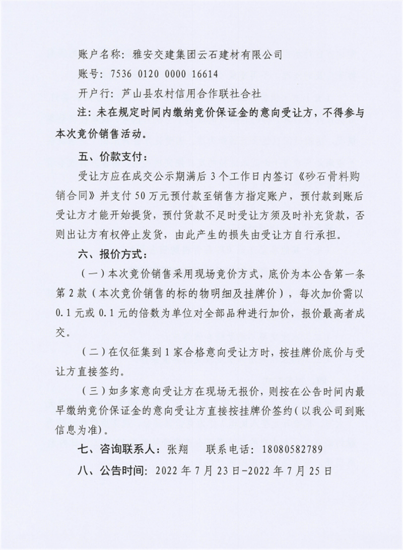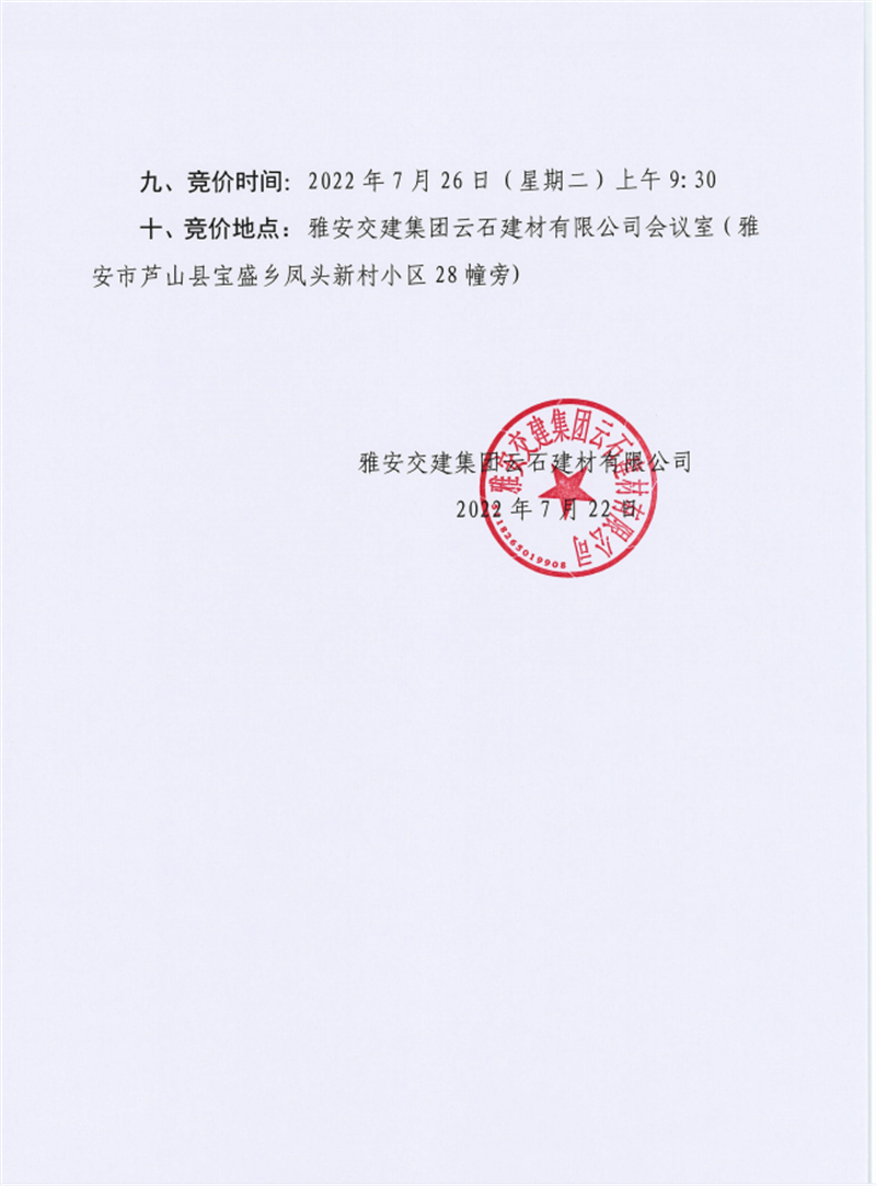 雅安交建集團(tuán)云石建材有限公司成品料競價(jià)銷售公告